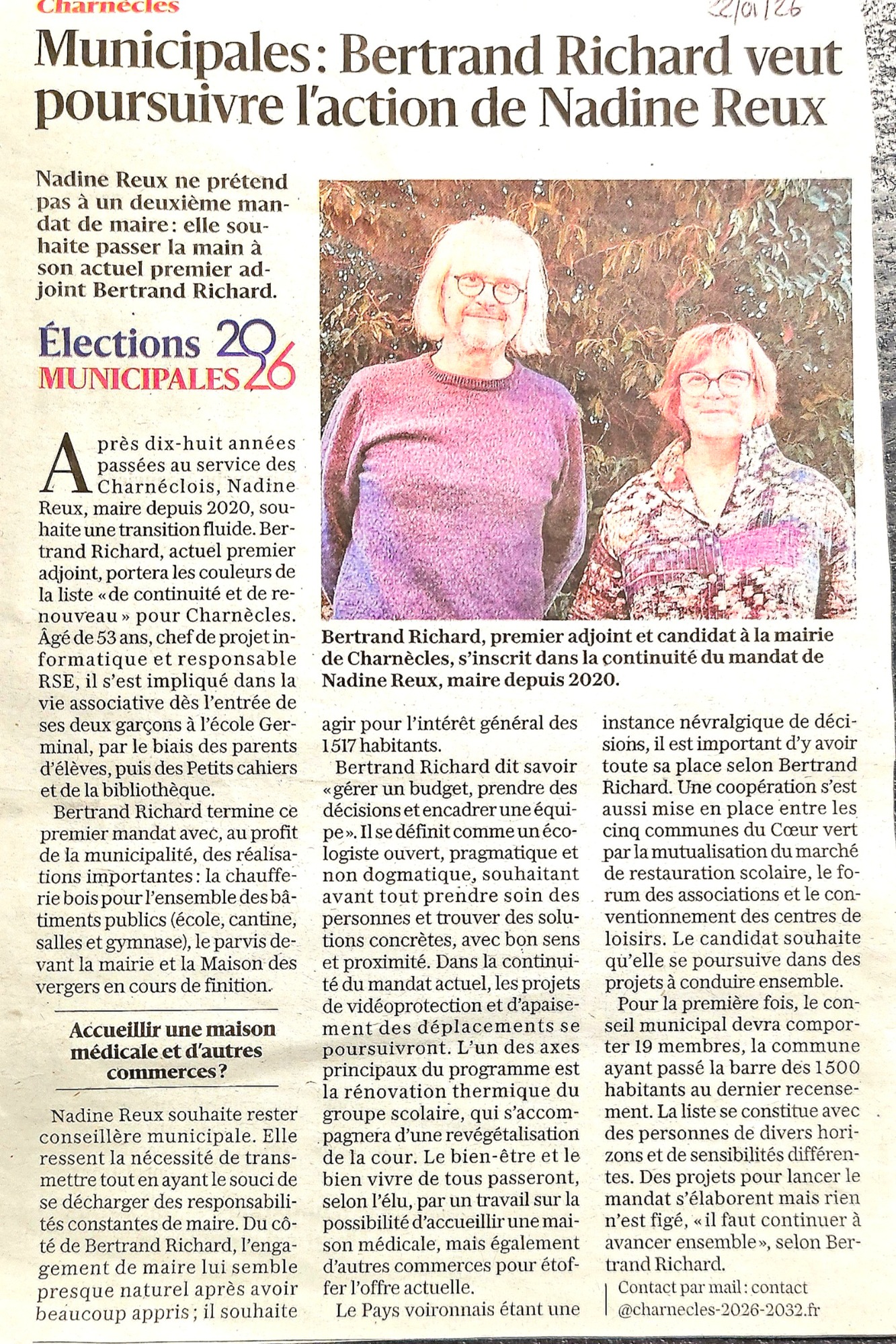 « J'habite le centre de notre village depuis 2002. Fort d'une première expérience, je souhaite participer à l'aventure 2026-2032 au service du bien commun. »